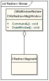 CWsRedrawMsgWindow is the class representing a redraw store. Draw commands are stored in a number of segments, stored in the nested class CRedrawSegment.