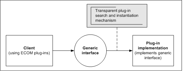 Plug-ins connect to the system using the EPOC Component Object Model (ECom). ECom is based on client/server architecture and provides services to instantiate, resolve, and destroy instances of plug-ins at run time. For more information, see the ECom Architecture.