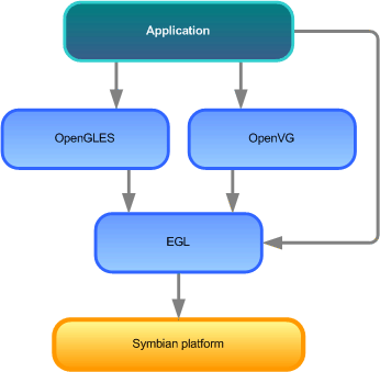 The Symbian platform provides support for a number of APIs created by the Khronos Group (www.khronos.org). This is a member-funded industry consortium focused on the creation of open standard, royalty-free APIs to enable the authoring and accelerated playback of dynamic media on a wide variety of platforms and devices. This topic provides a brief summary of the Khronos APIs that are supported in the Symbian platform.