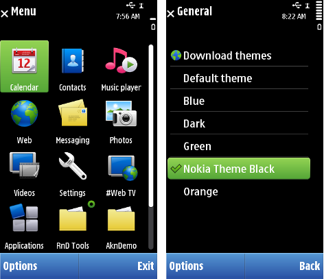 On a single tap, an item gets highlighted and activated on direct selection. The appearance of highlighting on a list item is a colored (theme related) bar, which completely occupies the item in focus. The item text and graphics are displayed on the bar.