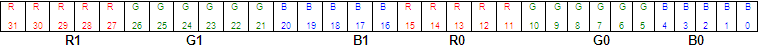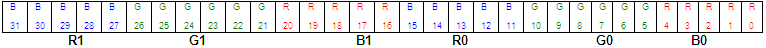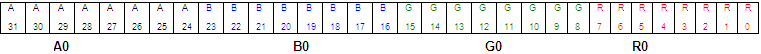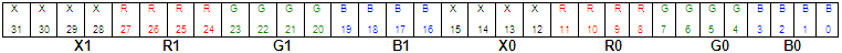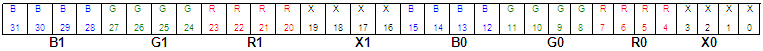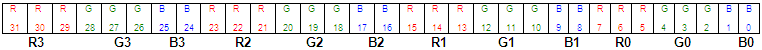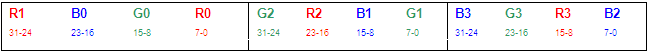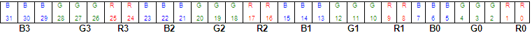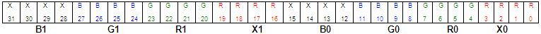 occupy 8 bits with blue in the low byte and one unused byte. Although it uses