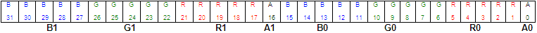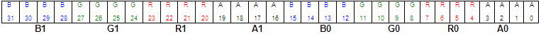 format with a 2-bit alpha channel. The blue, green and red color channels
