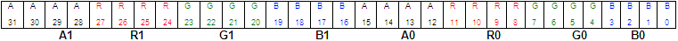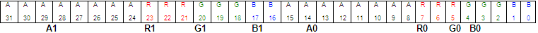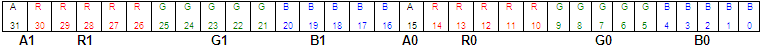 format with a 2-bit alpha channel. The red, green and blue color channels