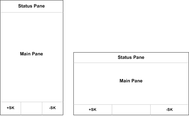 There are two generic layouts for touch UI -portrait orientation and landscape orientation, see the following figure. The Status pane in Touch UI has three variants: extended, flat and small.