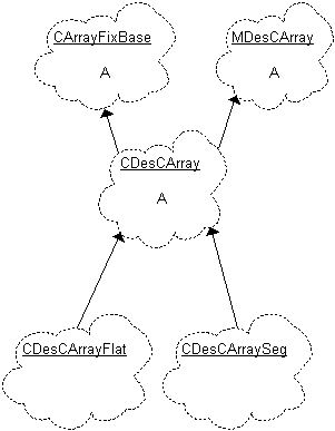 The base class is CDesCArray. Derived classes provide storage in flat arrays (CDesCArrayFlat) and segmented arrays (CDesCArraySeg).