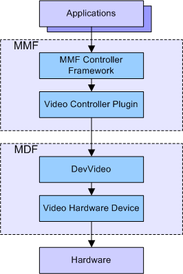 Shown below is a representation of how DevVideo interacts with the Multimedia Framework and Media Device Framework components: