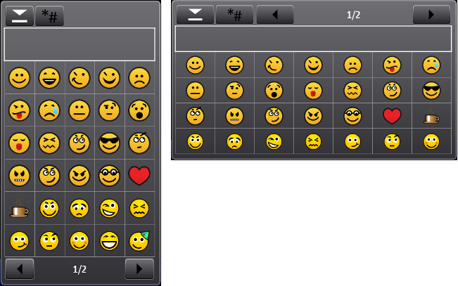 from dedicated smiley button in handwriting recognition, full screen QWERTY and virtual QWERTY keyboard.