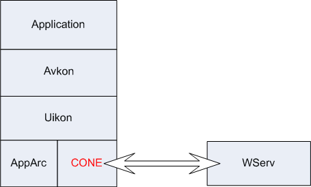 The control framework provides an abstract middle layer between the low-level windowing functionality, provided by the Window Server, and concrete user interface classes provided by UIKON and UI variant-specific libraries.